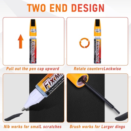 The 2-in-1 design combines a metal tip for small chip repairs and precise touch-ups with a brush for larger or longer scratches. This dual tool approach ensures the right instrument for any repair, making the process accurate and straightforward.