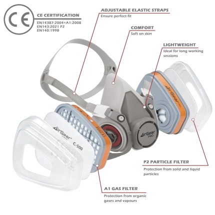 AirGearPro G-500 Reusable Respirator Mask with A1P2 Filters